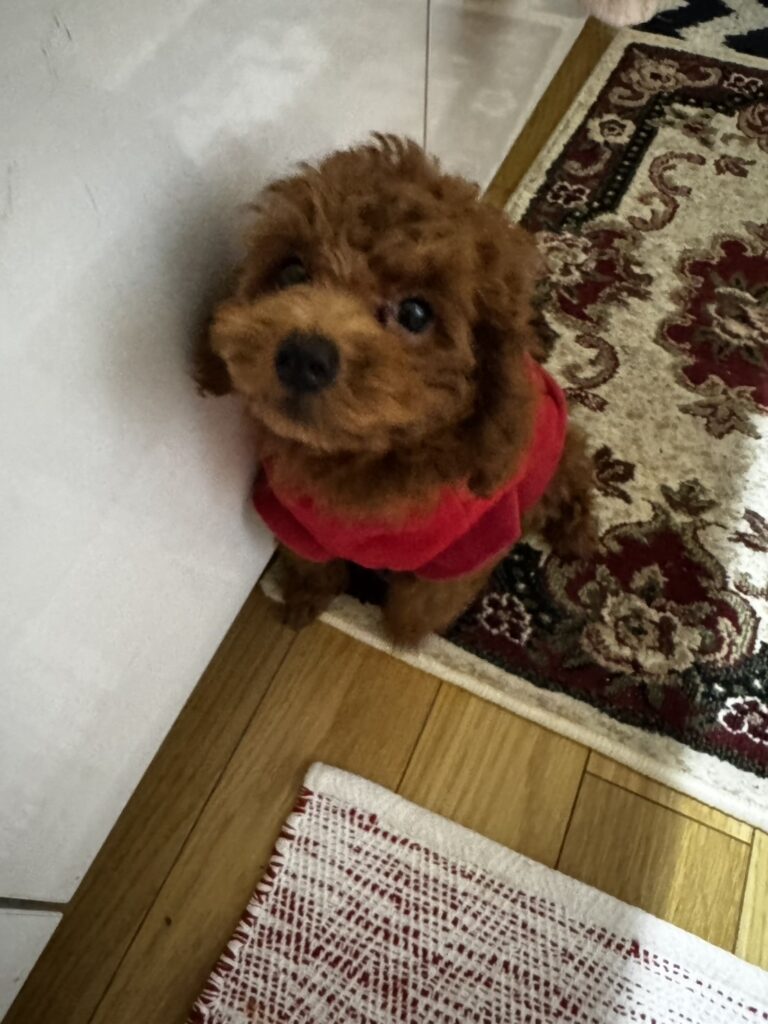 お迎え直後のお写真を頂いたのですが、早速暖かいお洋服を着せてもらい